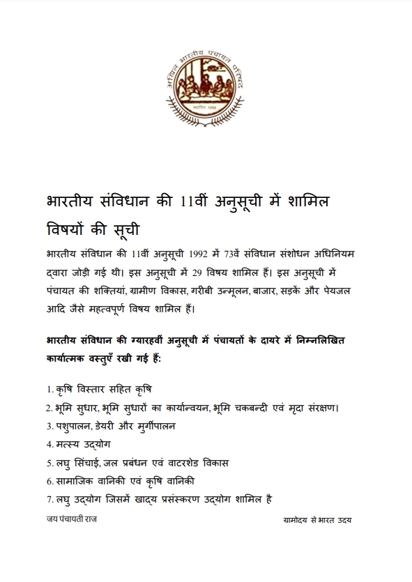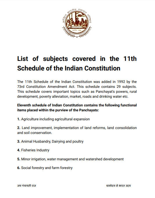भारतीय संविधान की 11वीं अनुसूची में शामिल विषयों की सूची