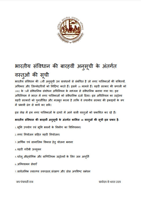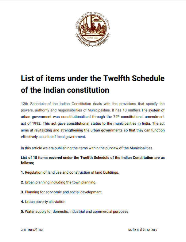 भारतीय संविधान की 12वीं अनुसूची में शामिल विषयों की सूची
